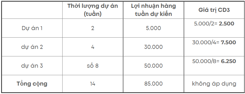 Thực hiện phép tính này sẽ cho bạn giá trị CD3 của dự án. Bạn nên nhớ rằng giá trị đó càng cao thì dự án càng trở nên quan trọng trên quan điểm kinh tế vì lợi tức đầu tư của nó sẽ nhanh hơn.